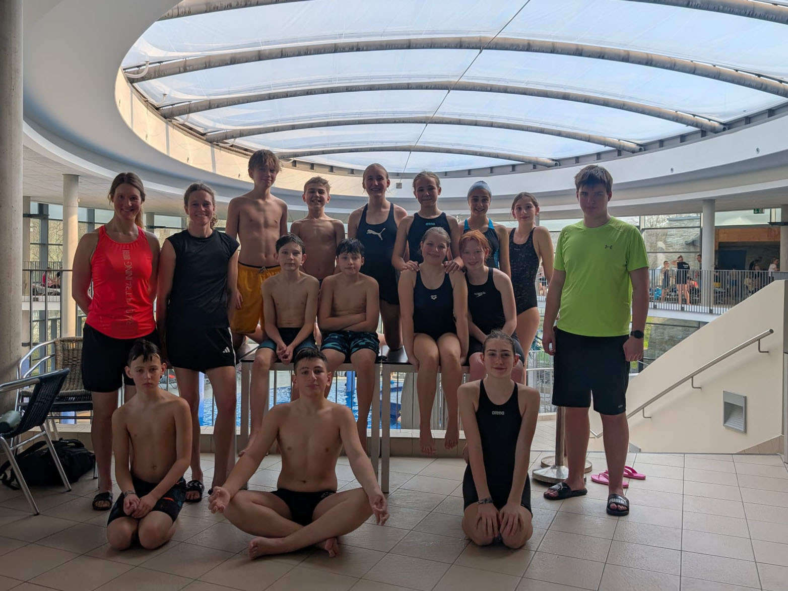 14 Schülerinnen und Schüler der Unter- und Mittelstufe des LMG haben sich seit Dezember 2025 mit intensivem Training ein- bis zweimal pro Woche auf den Wettbewerb „Jugend trainiert für Olympia“ im Schwimmen vorbereitet.