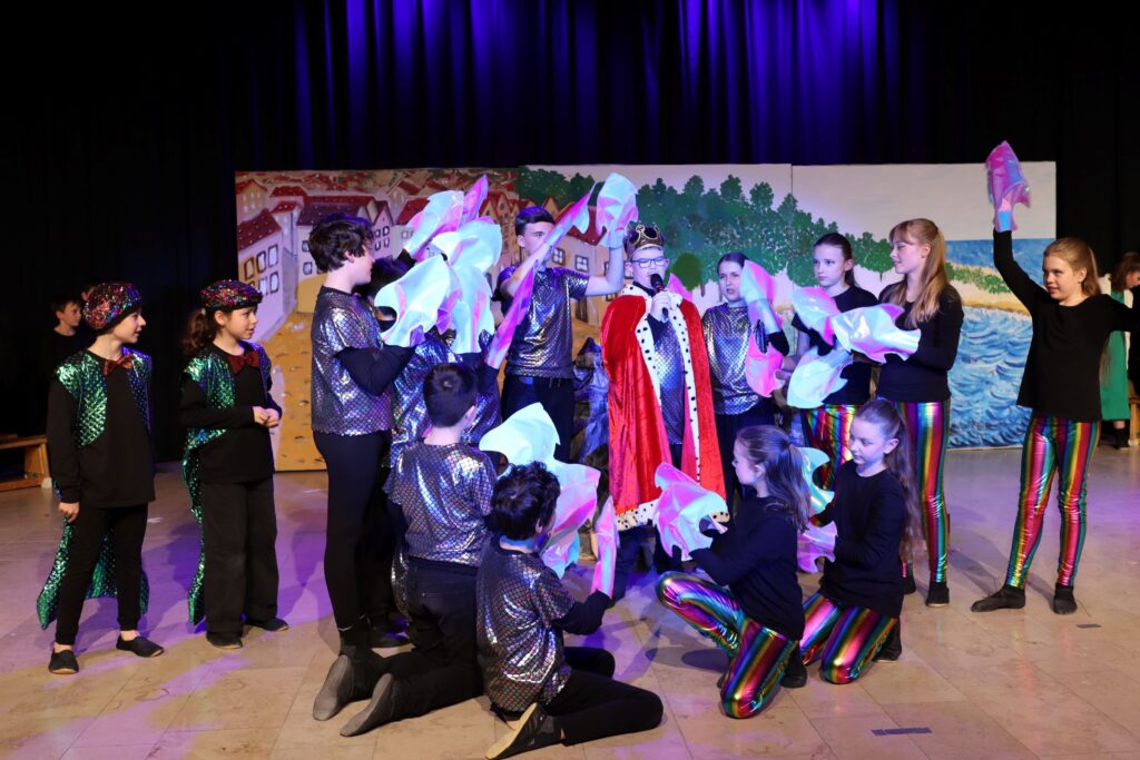 Die Musical-Version des Stoffes von Oliver Zahn (Musik) und Sophie Stürmer (Text) haben die Fünftklässler/innen des Lise-Meitner-Gymnasiums ein Schulhalbjahr lang geprobt und nun überzeugend auf die Bühne in der LMG-Aula gebracht. Begeisterte Grundschüler/innen, stolze Eltern, Geschwister und Verwandte beklatschten die jungen Akteure, die mit viel Mut und großer Spielfreude die Figuren des Stücks lebendig werden ließen. Großartige schauspielerische Leistungen beeindruckten ebenso wie anspruchsvolle solistische Gesangspartien und tolle tänzerische Darbietungen. Einen wesentlichen Beitrag zum gelungenen Gesamteindruck stellten außerdem die gekonnt und mitreißend gesungenen Chorstücke dar.