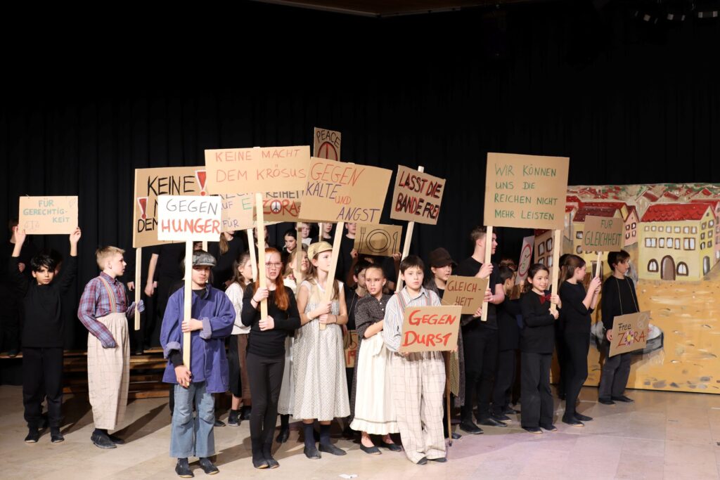 Vor dem letzten, gemeinsam geschmetterten Lied fordert der arme, aber gutherzige Fischer Gorian alle auf: „Wir wollen uns an die alten Uskoken erinnern und in Zukunft so leben wie sie. In Gleichheit und Gerechtigkeit!“ Auch die Fünftklässler/innen werden sich noch lange an ihr Musicalprojekt erinnern, an die rote Zora und ihre Uskoken und an den Traum von einer besseren Welt in Gleichheit und Gerechtigkeit, den Kurt Held literarisch gestaltet hat und den die Schüler/innen mit so viel Enthusiasmus auf die Bühne gebracht haben.