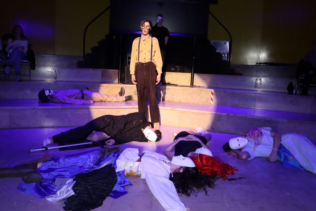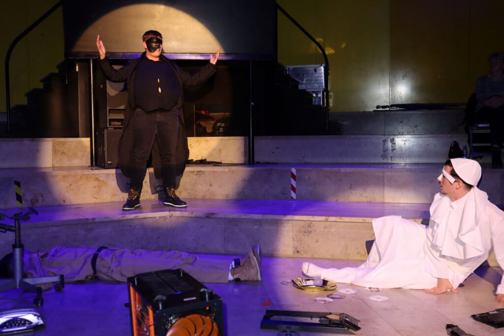 Ein weiteres herausragendes Merkmal der Inszenierung war die starke Herausarbeitung der Kontraste zwischen den Figuren: Auf der einen Seite standen realistische, alltägliche Menschen, die Beckmann zurückweisen oder überfordern – auf der anderen Seite symbolische Gestalten wie der Tod oder ein resignierter Gott, die dem Stück eine fast traumartige Tiefe verliehen. Ebenso beeindruckte der Wechsel zwischen düster-schweren und überraschend schrägen, fast komischen Szenen – ein Balanceakt, den das Ensemble sicher meisterte.