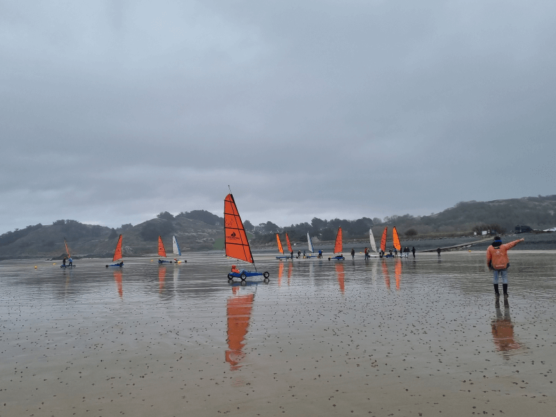 Ein Highlight war sicherlich auch die Einführung in das Strandsegeln (char à voile) . Auch wenn wir an diesem Vormittag etwas Pech mit dem Wetter hatten (das einzige Mal!) war es ein Riesen-Spaß, mit den Strandseglern im Slalom über den Strand zu rasen.